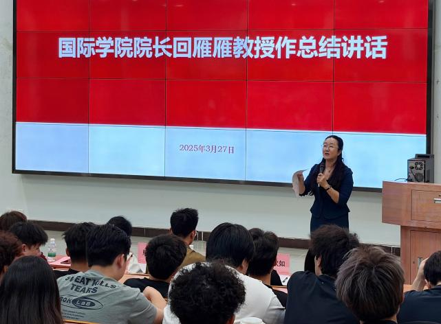 回雁雁院长在总结讲话中提到,本科教学工作合格评估最终的受益者是同学们,因为学校办学定位是把握人才培养的目标和方向,师资队伍数量和能力是保证教学质量的关键,教学条件是保证人才培养质量和水平的基础,课程建设是保证人才培养符合社会需求和切实提升同学们能力,质量管理是各项教学和服务的衡量标准。为此,同学们要从自身出发,做好“五个保底”基本要求和“两个冲高”进阶目标。“五个保底”包括:提升准时到课率,坚持前排就座,严格遵守课堂纪律,自觉践行文明礼仪规范,达到体质健康测试标准等。“两个冲高”的目标:一是英语能力不断提升,体现国际学院的办学特色,提升国际交流和跨文化交际能力;二是积极参与学科竞赛、创新创业等活动,全面提升国际学院大学生的核心竞争力。