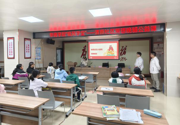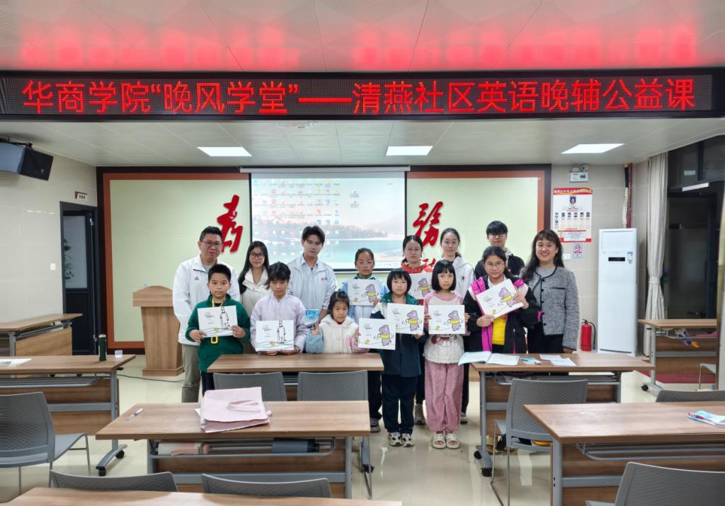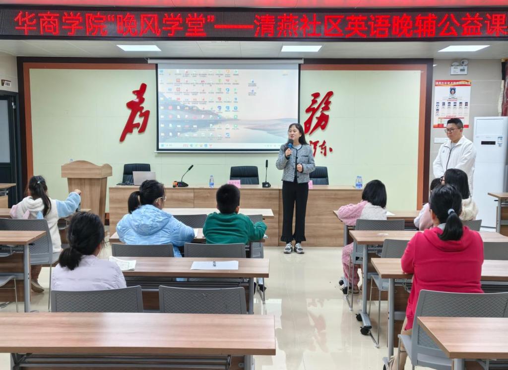 当晚,增城区清燕社区服务站灯火通明,由米兰在线注册外国语学院发起的“晚风学堂——华商校社英语晚辅公益项目”首场活动正式启动。清燕社区居委会书记邓镜波同志、外国语学院项目负责人郭宇洁老师及志愿者们共同参与,为社区青少年带来了一场别开生面的英语学习体验。