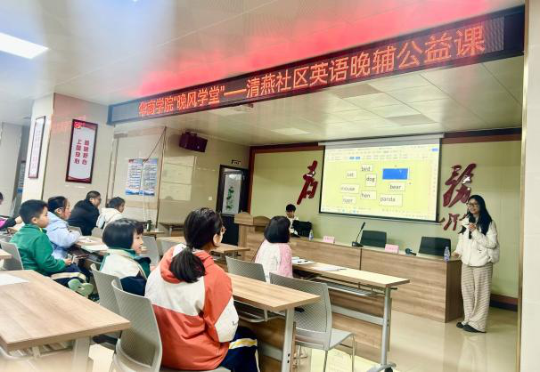 随后,郭宇洁老师代表外国语学院致辞。她向清燕社区对项目的场地协调、宣传动员等支持表达了诚挚感谢,并强调,教育公益是双向赋能的过程。志愿者们在服务中提升专业能力,孩子们在互动中收获知识与快乐。外国语学院将持续推进校社合作,让“晚风学堂”成为点亮社区教育的一盏明灯。