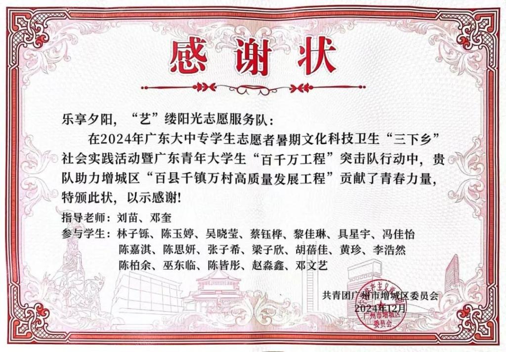 实践队员们充分发挥专业优势,将高校教育资源与基层需求紧密结合,为乡村教育注入创新活力,推动传统文化传承与社区文明建设。共青团广州市增城区委员会在表彰中高度评价,三支队伍以实际行动诠释了新时代青年的责任与使命,为“百千万工程”提供了生动的实践范本。
