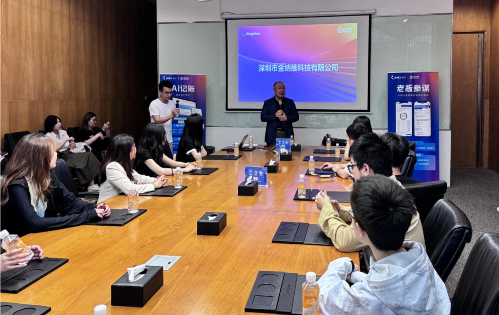 在金蝶软件园,学子们见证了云计算、大数据、人工智能等前沿技术在行业中的应用与发展,与企业内部人员的交流,洞悉数字化转型对财会行业发展的深远影响。