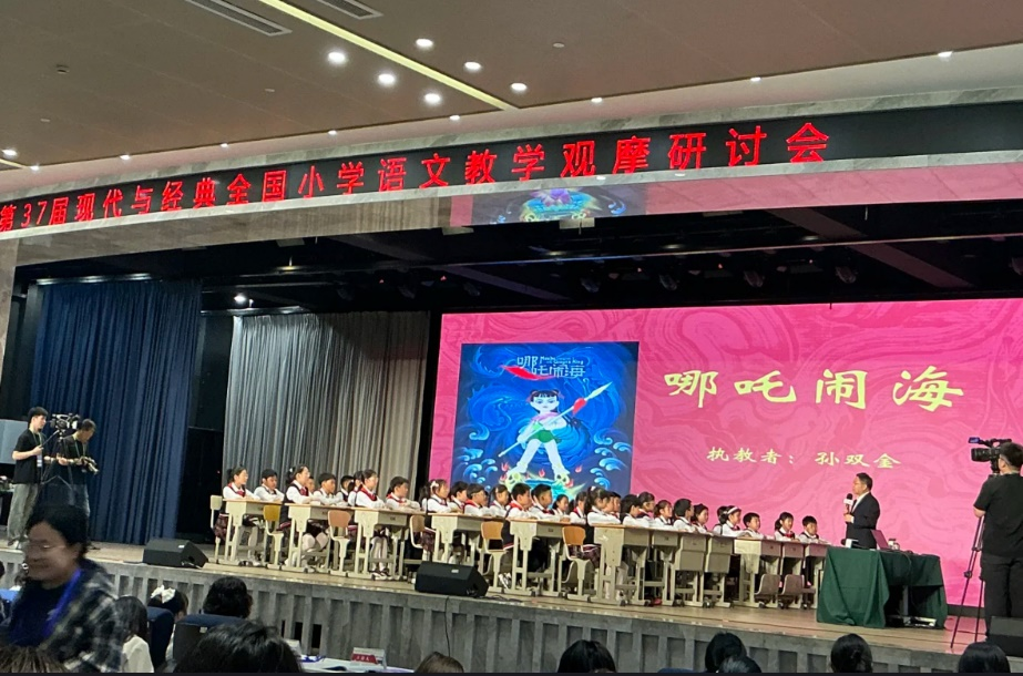 在本次研讨会上,薛法根老师以《刷子李》为课例,展示了读写结合的创新教学方法;孙双金老师将《哪吒闹海》与AI技术相结合,倡导“科技赋能,人文内核”的教学理念。此外,曹爱卫、何捷、罗才军等教师通过《中国美食》《金字塔》《短诗三首》等课程,展现了趣味情境创设、非连续性文本教学、诗歌诵读与创作等多元化的教学方法。南京师范大学吴永军教授提出的“基础性—拓展性—创新性”三层次语文实践框架,为课堂教学提供了理论支持。白皛老师和许嫣娜老师分别通过《塞下曲》和《雷雨》的授课,展现了古诗教学和识字教学的创新实践。