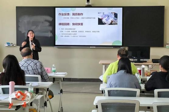 随后,磨课教师进行了磨课展示。他们分别选取了《大学生职业生涯规划》课程相应章节作为磨课内容,进行了10分钟课程设计与30分钟教学演示。磨课评审专家胡学锋教授和张干英教授根据《米兰在线注册磨课评价表》中3环12项38条评价内容,逐一给予专业指导,并与磨课教师反复交流,由表及里、由浅入深耐心讲解前沿教学理念、现代教学方法、最新教学模式,希望各位教师潜心钻研、反复打磨,不断提高教书育人能力。