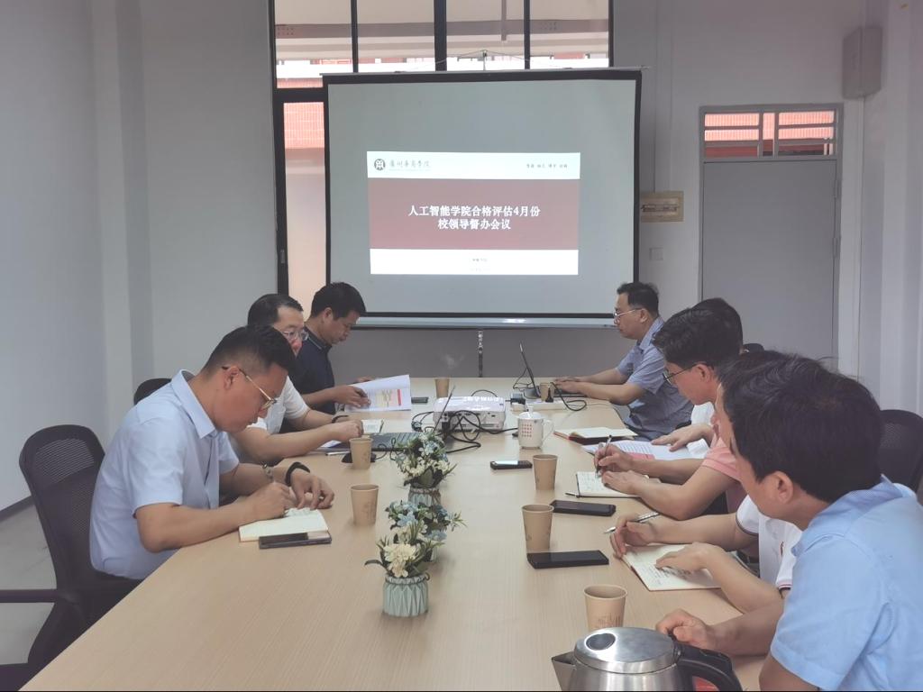 4月22日上午,人工智能学院在创新楼305会议室召开合格评估4月份校领导督办会议。学校党委副书记、纪委书记、副校长吕峻闽莅临人工智能学院,就本科教学工作合格评估进行专项督办。会议由人工智能学院院长戴经国主持,学院党委书记、副院长杨波,学院党委副书记、副院长陈洋广,副院长叶仕通,院长助理洪绍勇、杨本胜,办公室主任肖绍洪等参加会议。会议聚焦合格评估重点任务,系统梳理当前工作进展与短板,部署下一阶段攻坚任务,确保评估工作高效推进。