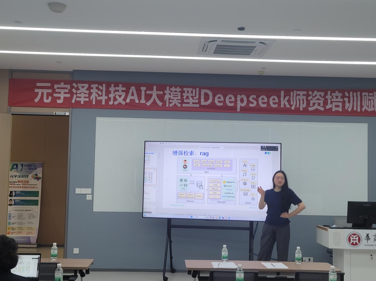 培训围绕DeepSeek V3与R1模型、LangChain部署、RAG技术应用等前沿内容展开,通过理论讲解、实战演练和互动讨论相结合的形式,帮助教师深入掌握大模型的核心技术及其在教育场景中的应用。课程涵盖模型优化、强化学习新范式、基于PDF的智能问答系统开发等热点领域,为参训教师提供了丰富的技术工具和教学灵感。梁雪瑶博士作为连续创业者,分享了AI大模型在金融、零售等领域的商业化应用案例;戴晓祥讲师则从技术普惠角度,拆解了LangChain等工具的教学化应用。