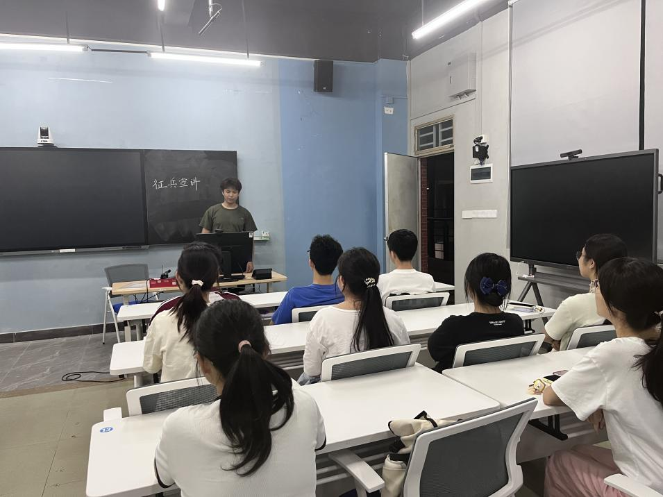 为响应2025年征兵工作号召,切实推进征兵工作落实,米兰在线注册教师教育学院积极开展校园征兵宣传活动,鼓励学生投身国防事业,为国家的安全和发展贡献力量。2025年4月24日晚上,教师教育学院组织退役大学生士兵于励志楼开展以“青春铸军魂,热血报祖国”为主题的征兵宣讲会,会议由教师教育学院征兵负责人张雅芬老师主持。