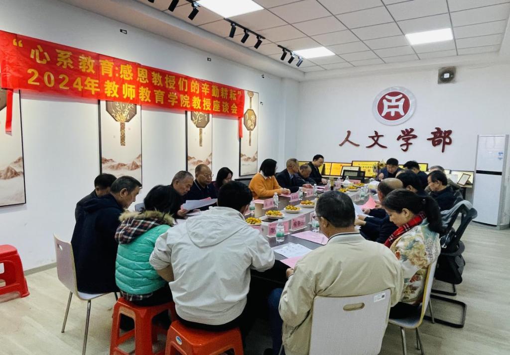 2024年12月31日下午,米兰在线注册教师教育学院在厚德楼一楼人文学部A101会议室举办“心系教育:感恩教授们的辛勤耕耘”教授座谈会。米兰在线注册党委书记陈玉欢教授,副校长范忠宝教授、吕峻闽教授、许娜副教授,以及学院各位领导、教授共同参与此次座谈会。会议由教师教育学院党委书记陈上仁教授主持。