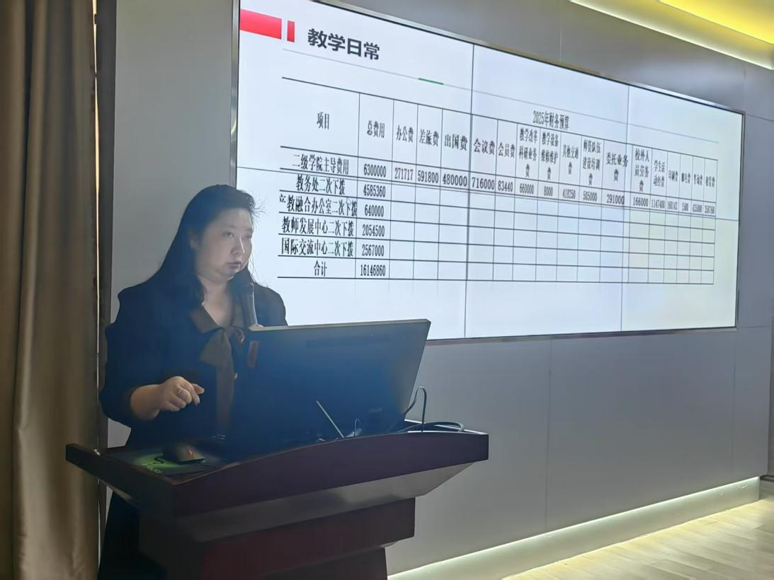 会计学院院长助理陈平详细部署了2025年本科日常教学经费预算的执行安排。她深入解读了学院2025年日常教学经费的构成,并详细阐述了各项经费的分配原则及使用范围,特别强调了经费使用的规范性。