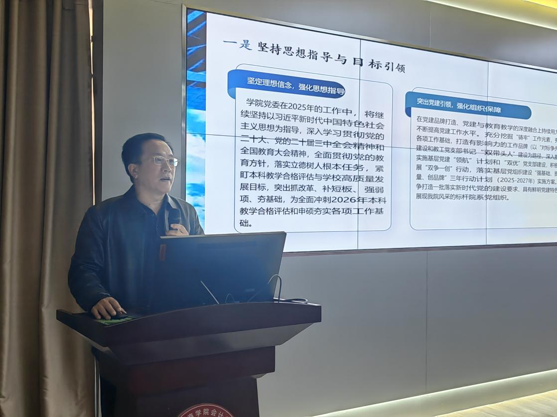 2月20日,会计学院在学院报告厅召开2025年春季学期开学合格评估工作部署会,会议由副院长周书域主持。学院领导班子及全体教师齐聚一堂,共同开启新学期的新征程。