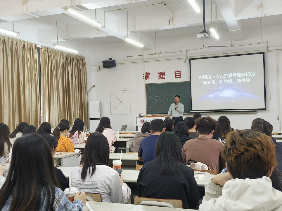 讲座伊始,李副教授首先带同学们回顾了AI技术对传统人力资源管理带来的深刻影响。他指出,从招聘流程中的智能筛选简历、面试机器人,到培训环节的在线学习平台、个性化学习路径推荐,再到绩效管理的数据分析、预测模型,乃至员工关系管理的智能沟通系统,AI正逐步渗透到人力资源管理的每一个角落,极大地提高了工作效率,同时也对从业人员的技能提出了新的要求。