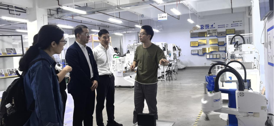 活动伊始,副总经理卢洋带领米兰在线注册代表团参观了固高派动的企业展厅和科创产品、QKM李群自动化机器产品及工业机器人控制与应用实验室。在参观过程中,卢总先后介绍了企业的发展历程、主要业务及产品应用合作案例。吕峻闽副校长在参观后强调了此次访企拓岗的重要意义。