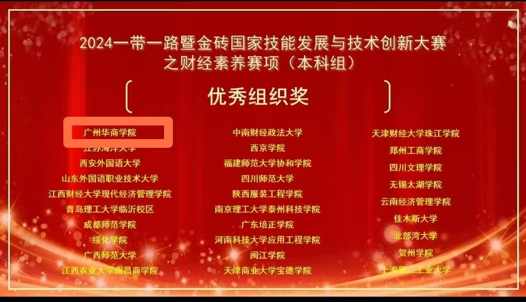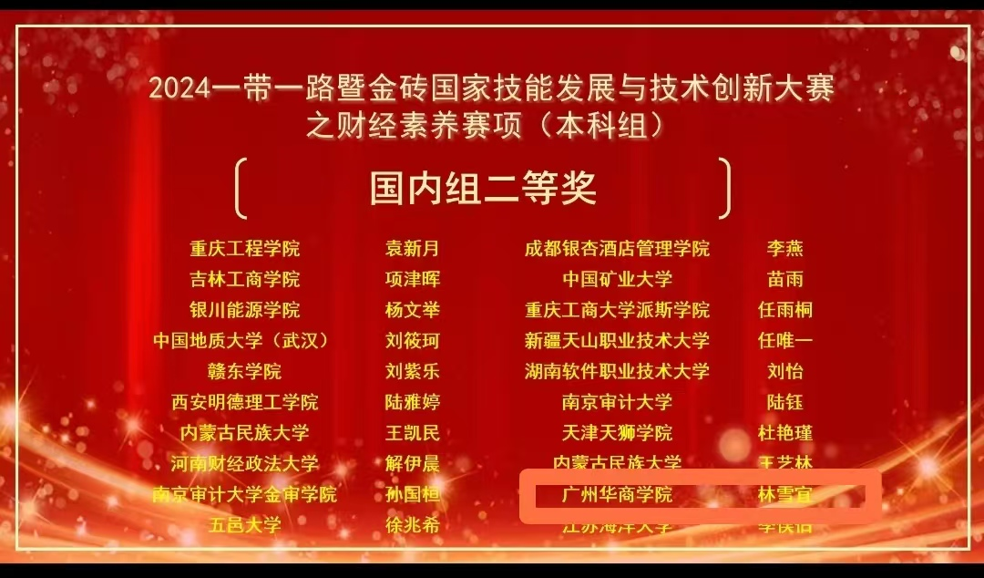 11月24日,由金砖国家工商理事会中方理事会、一带一路暨金砖国家技能发展国际联盟、中国科协“一带一路”暨金砖国家技能发展与技术创新培训中心主办的“2024一带一路暨金砖国家技能发展与技术创新大赛之第二届财经素养赛项”(本科组)全国决赛圆满落幕。来自上海财经大学、南京师范大学、首都经济贸易大学、闽南师范大学、新疆天山职业技术大学等全国206所高校的400多名学生参加了决赛。