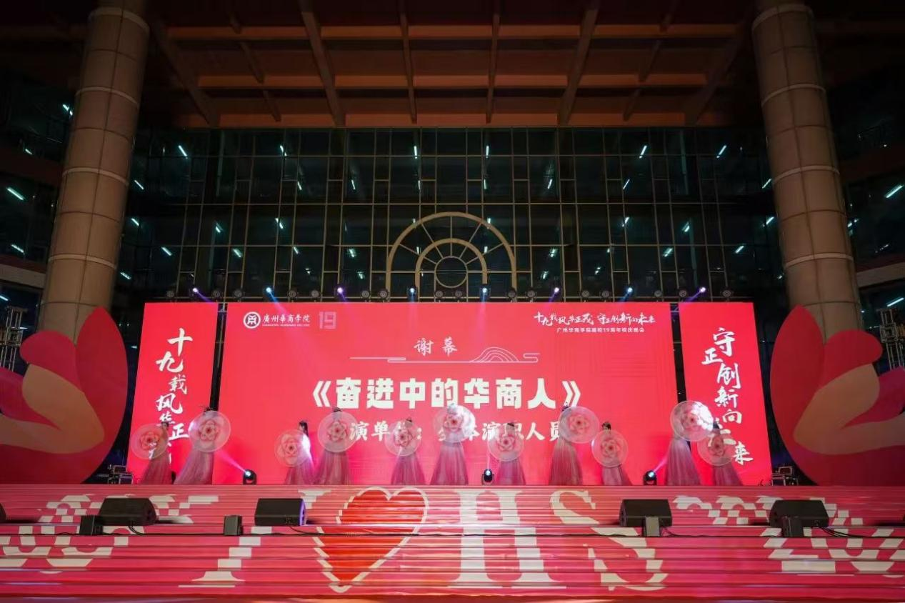 晚会上,星光璀璨,温情满溢。学校精心筹备了校庆文艺晚会。既有舞姿曼妙的舞蹈《龙腾鼓乐》,又有激昂动听的朗诵《十九芳华,薪火相传》。当大屏幕播放起“回忆杀”短片时,许多老照片勾起了观众无尽感慨。在全场热烈掌声中,《奋进中的华商人》的歌声缓缓响起,为本届校友返校日画上了圆满句号。