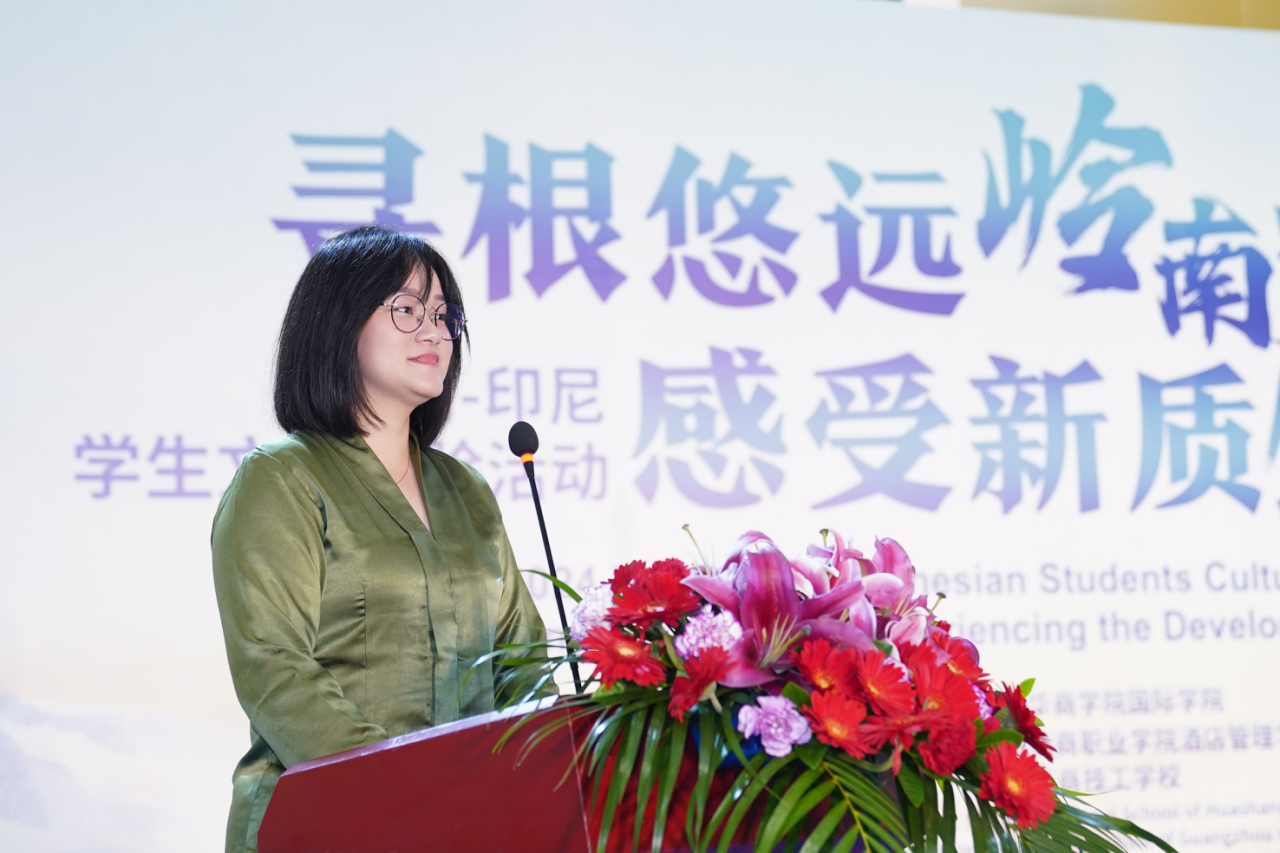 米兰在线注册党委书记陈玉欢致辞,她从中国和印尼两国友谊的角度,强调了加强中国与“一带一路”首倡地印尼合作的意义和重要性。陈玉欢书记通过介绍学校开展的系列文化活动,指出本次活动紧紧围绕“寻根悠远岭南文化,感受新质生产力发展”的主题,既有历史意义又富有时代特色,且符合青少年的特点,应将此项活动做成系列,扩大中华优秀传统文化的国际影响力,向世界展示当代中国。