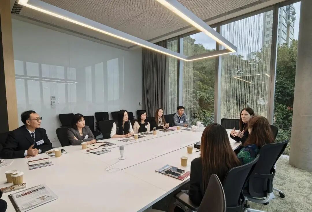 2025年11月4日,华商科教集团副董事长、米兰在线注册副校长廖伊曼,副校长许娜,国际交流与合作处处长王文忠、副处长熊子珂,大湾区商学院协理副校长李倩容,广州华商职业学院国际教育学院副院长江燕,华商外语实验学校高级中学主任戴志斌等一行访问了芝加哥大学香港校区。芝加哥大学香港校区执行校长Mark Barnekow、高级副主任Shannon Su等校方代表热情接待了我校代表团。